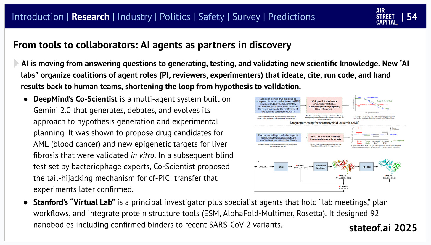 In the State of AI Report 2025, we predicted that “open-ended agents will make a meaningful scientific discovery end-to-end.” Whether this happens this year or next matters less than the direction of travel. What matters now is not speculation, but evidence.