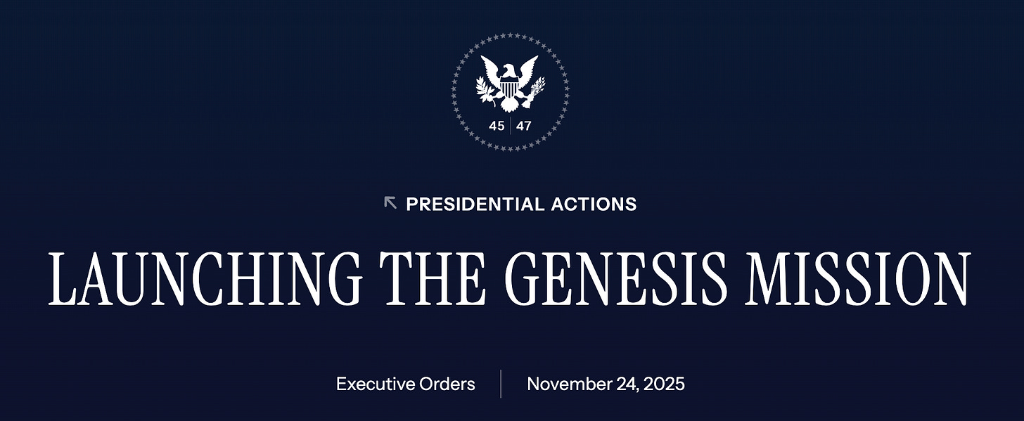 The mission directs agencies to develop scientific foundation models, deploy AI agents capable of generating and testing hypotheses, and expand autonomous laboratory systems. Priority domains include fusion energy, advanced nuclear technologies, climate and Earth system modelling, biomedicine, drug discovery, materials science, and grid resilience. It also establishes governance mechanisms for safety, provenance, and access. Genesis reflects a geopolitical shift in which scientific competitiveness - and national resilience - are increasingly tied to the ability to integrate AI into discovery itself. And this is incredibly exciting.