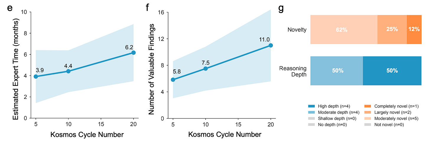 The evidence suggests that Kosmos excels at compressing exploratory synthesis that might otherwise take months into hours, which in and of itself is valuable. What it has not yet demonstrated is an unambiguous case where a system-generated hypothesis led to a previously unknown physical or biological mechanism validated experimentally. Its strength today lies in throughput and structure, not in replacing the final act of discovery.