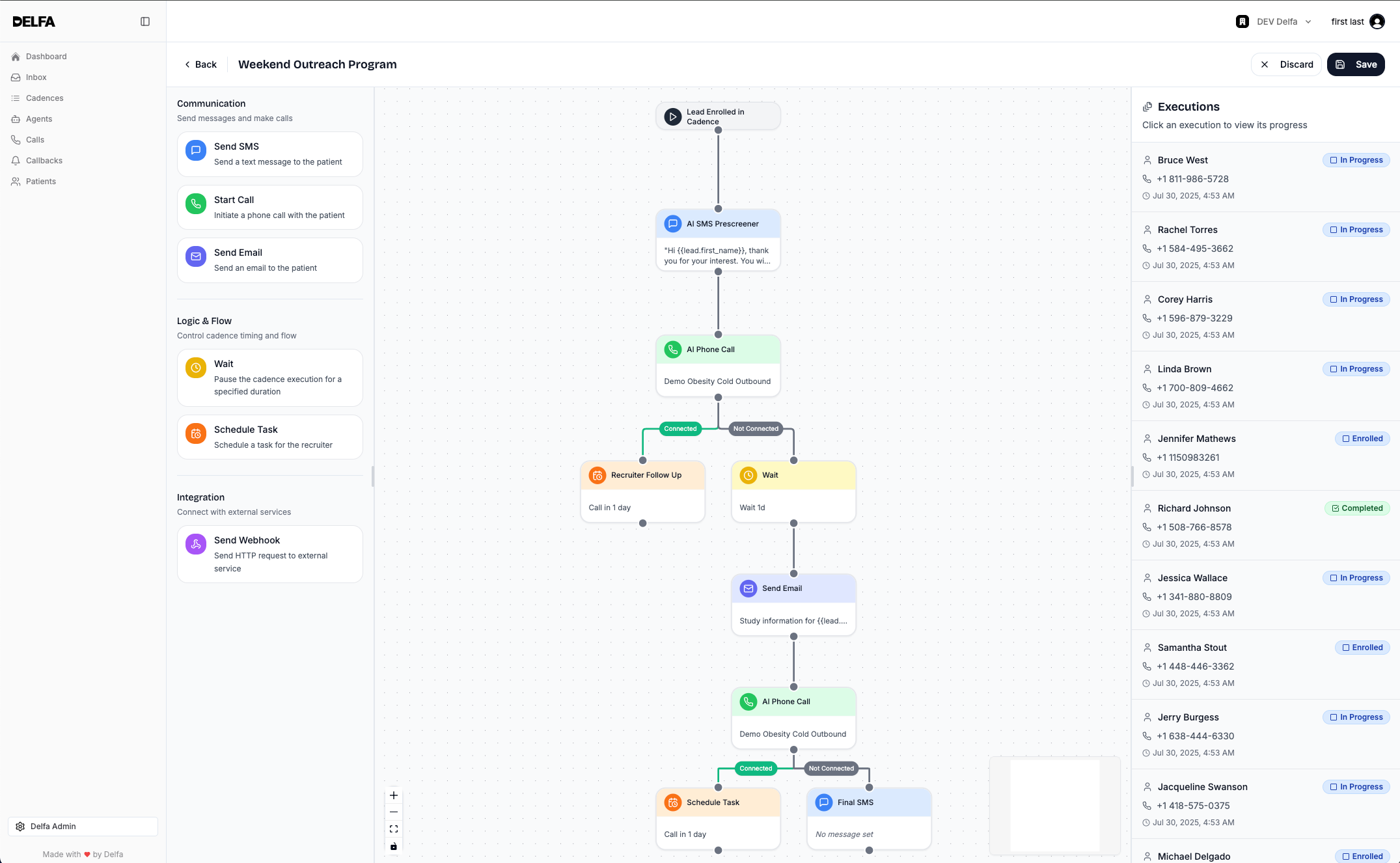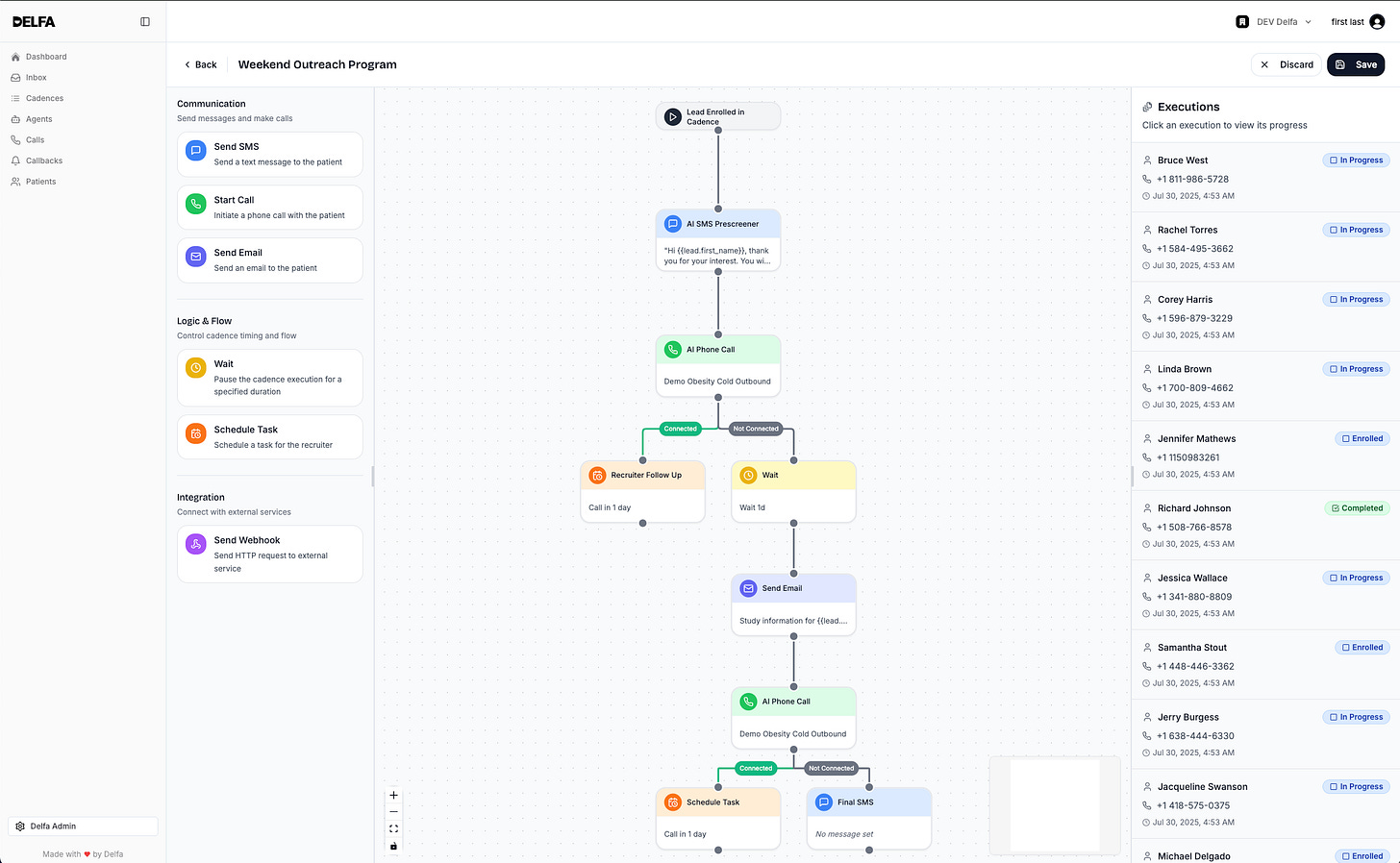The Delfa PRM is built on modern AI systems that can interpret unstructured communication, understand documents, coordinate tasks, and maintain context across an entire participant journey. Instead of acting as a passive system of record, it operates continuously in the background. The system does the work, rather than asking humans to do it on its behalf.