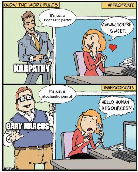 You can suggest LLMs aren’t magic reasoning machines and command community respect if, like Andrej, you acknowledge they “can still be super useful”. Andrej also has a record of just … being right. While people like Gary were mocking the potential of transformers, he saw their potential as general purpose technology.